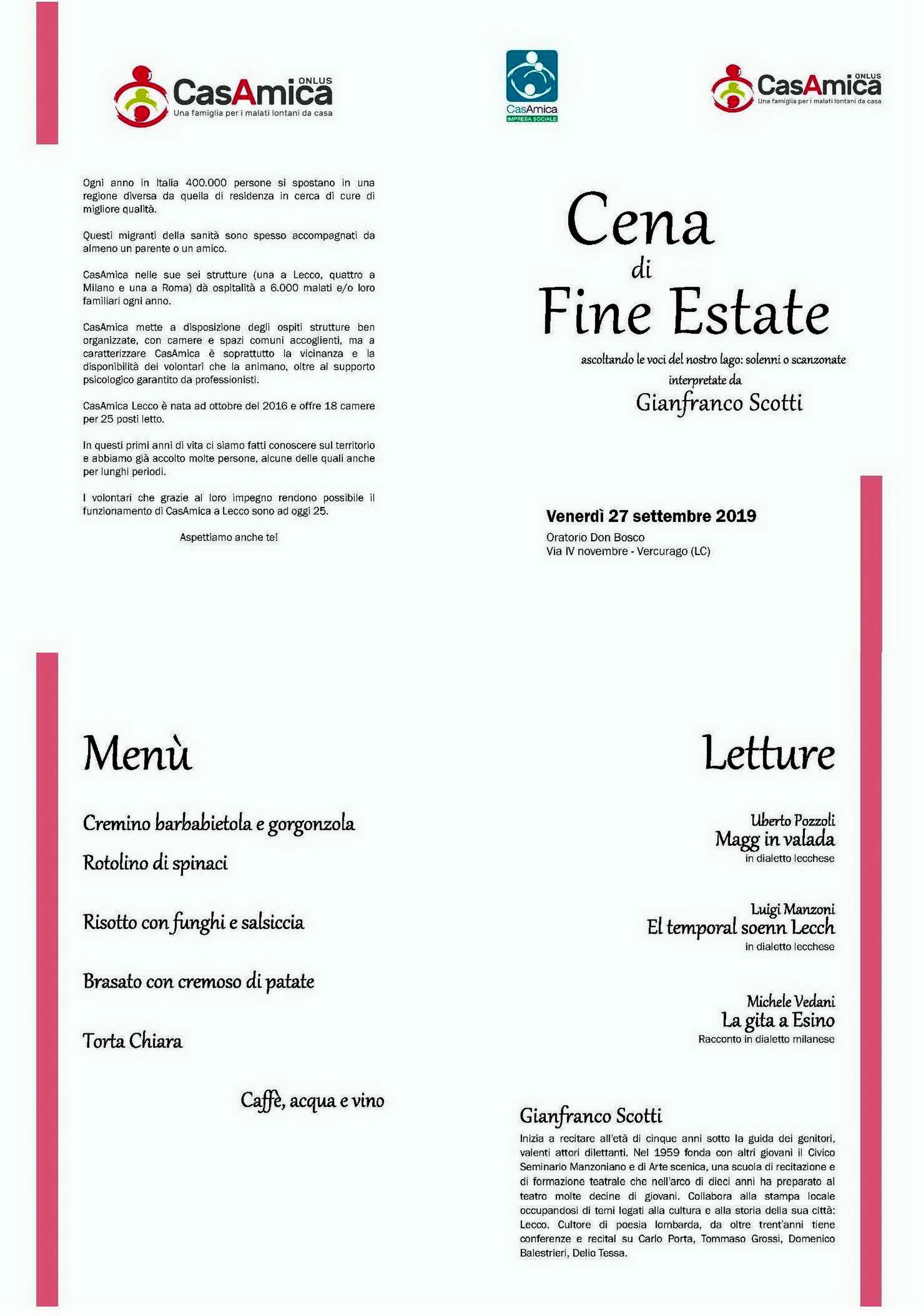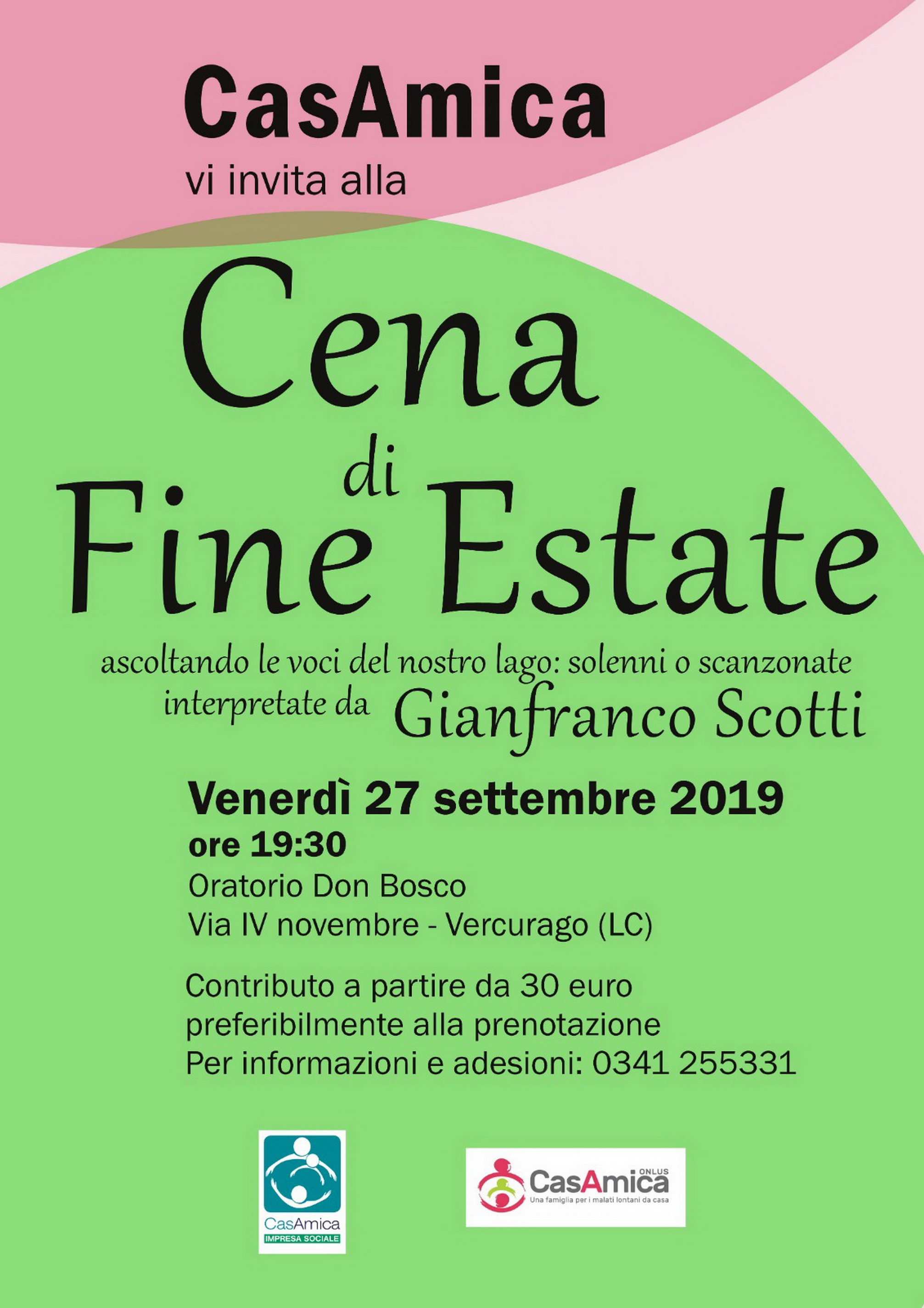 Per il terzo anno consecutivo, venerdì 27 settembre CasAmica Lecco ha organizzato la “Cena di Fine Estate” presso l’Oratorio Don Bosco di Vercurago.